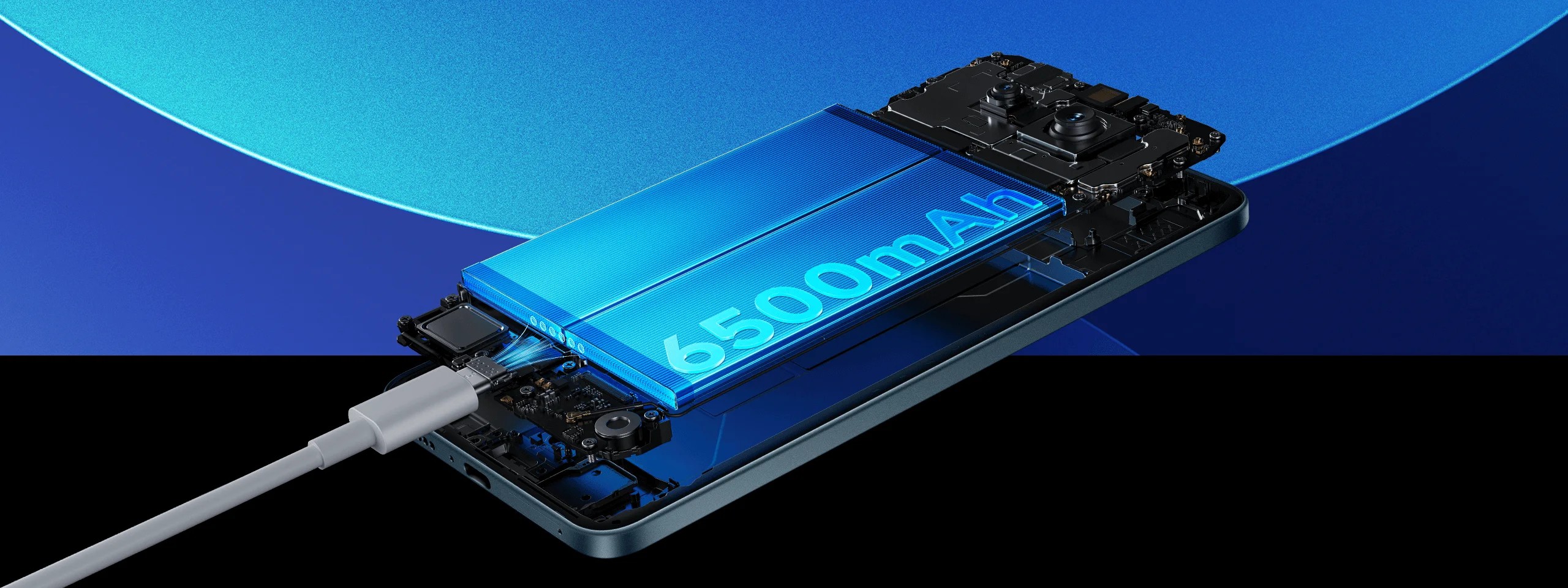 Аккумулятор ёмкостью 6500 мА·ч на базе кремний-углеродной технологии рассчитан на длительную работу без подзарядки в течение дня и дольше при умеренной нагрузке. Смартфон поддерживает турбозарядку мощностью 45 Вт через USB Type-C, а также реверсивную зарядку до 18 Вт для подзарядки совместимых устройств.